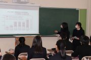 3月17日に各HRで行われたグループごとの研究発表で、グループ代表になった生徒によるクラス全体への発表会が開催されました。