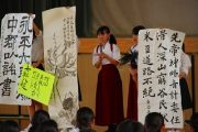 本校のオープンスクールは,生徒会執行部,ボランティアの生徒,部活動紹介を行う生徒など生徒が主体となって,普段の学校生活をありのままお見せすることを心掛けております。受付だけではなく,全体会の進行も生徒が行っていました。