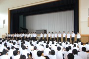 顧問の選手紹介、校長・生徒会より激励の言葉があり、 選手代表謝辞ではバスケットボール部のキャプテンがインターハイでの勝利を約束し終了しました。インターハイは石川県で、総合文化祭は富山県で行われます。健闘をお祈りします。