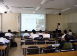 工学部からは通信ネットワーク工学科 豊田先生,機械システム系学科 佐々木先生,通信ネットワーク工学科4回生で,本校の卒業生である浅原さんが来校しました。工学部とはどのような学部なのか,各学科での研究内容,就職状況,大学院への進学等,生徒が知りたい内容を,親しみやすい口調で楽しくお話しいただきました。また,浅原さんは工学部の女子学生はどのような毎日を送っているのか,自分が工学部を目指した理由,就職活動のこと等のお話しくださいました。